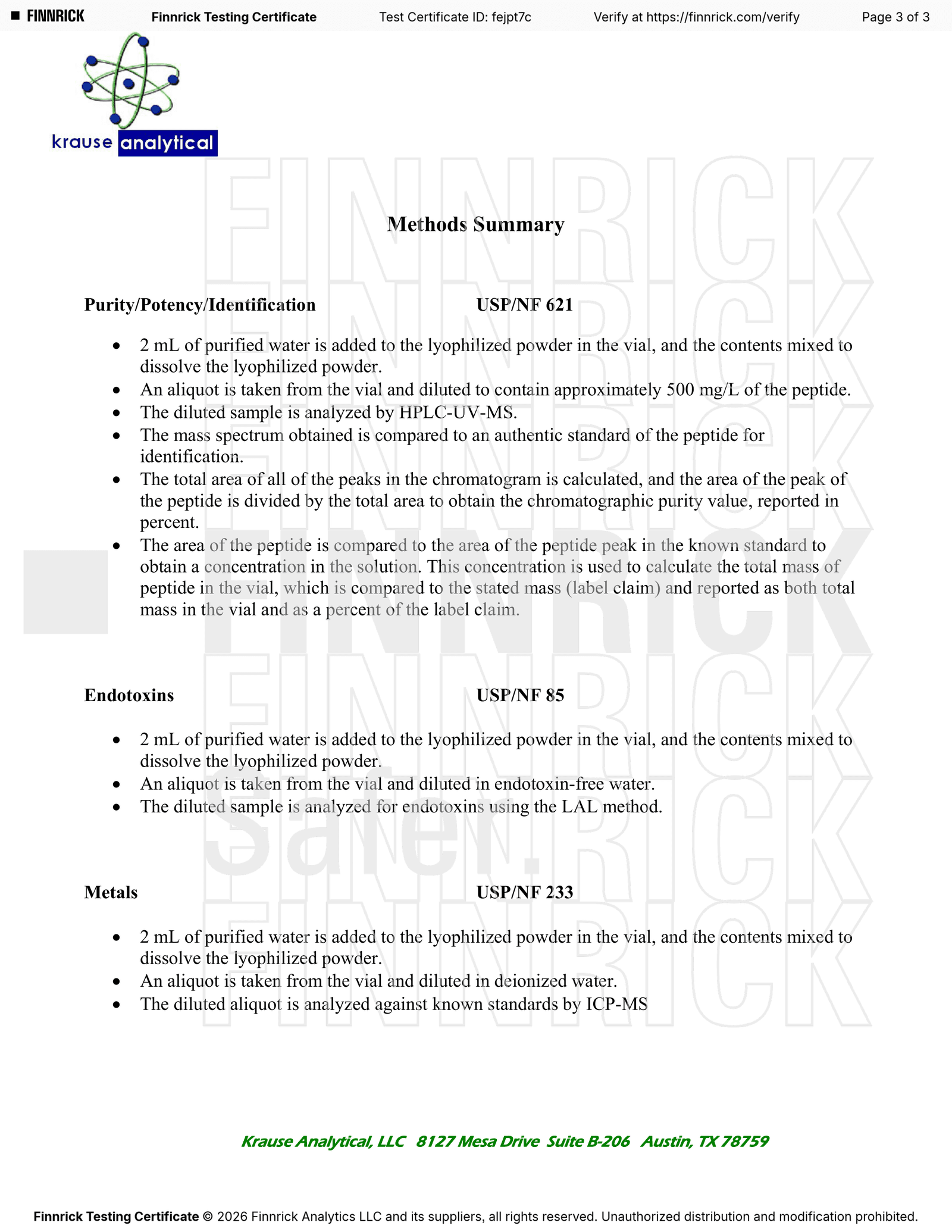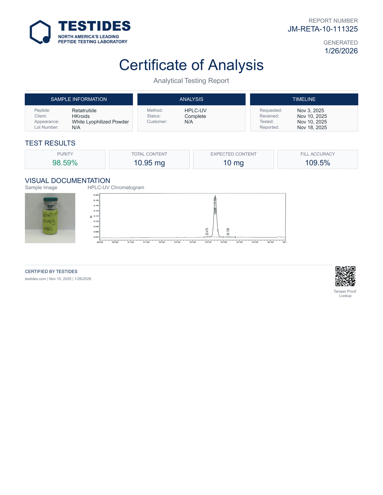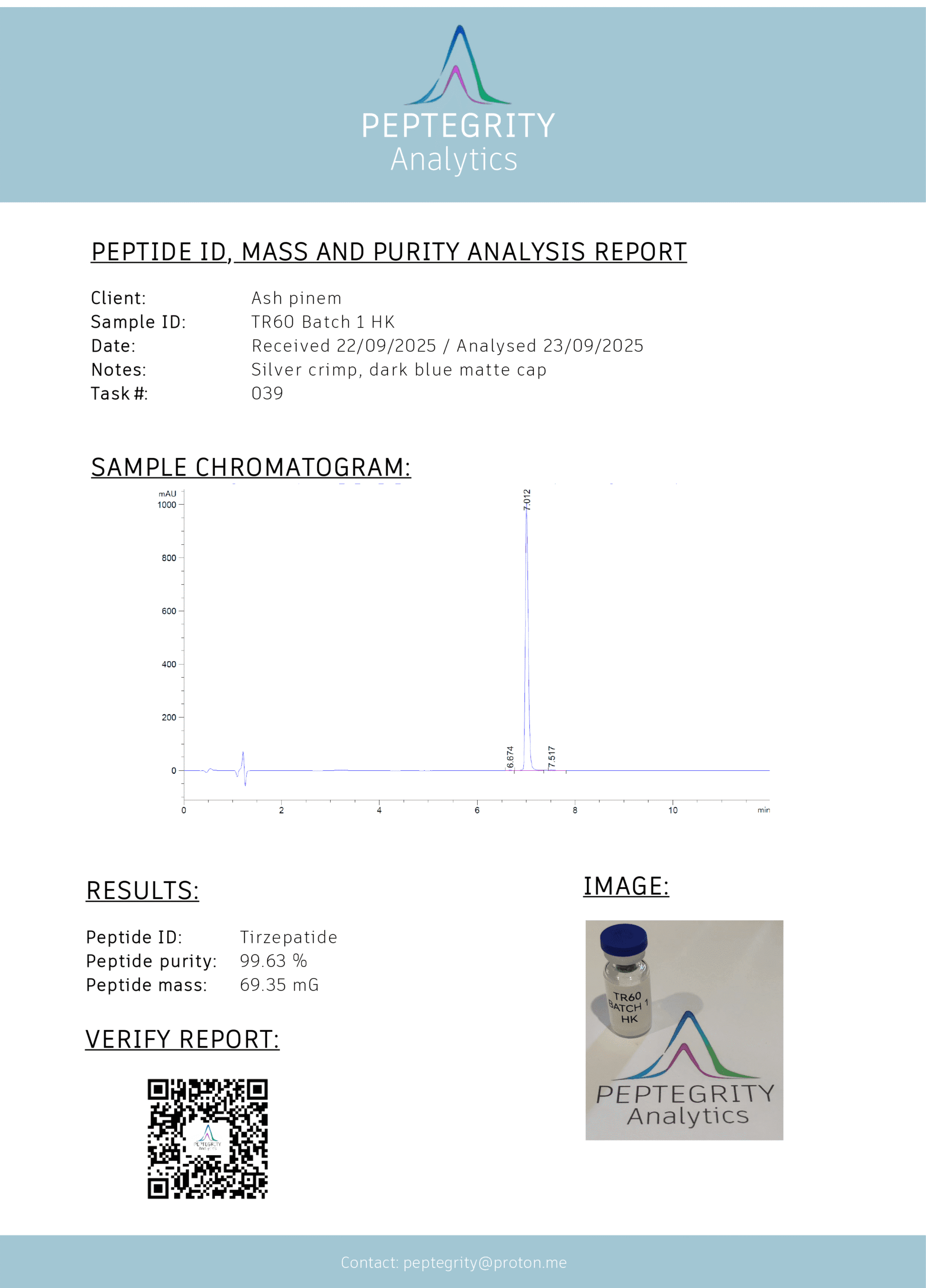 Check the latest lab results of our products. We offer stable and top-notch quality & purity products. Welcome to test any batch of our products. Check our full pricing catalog and find out more products.