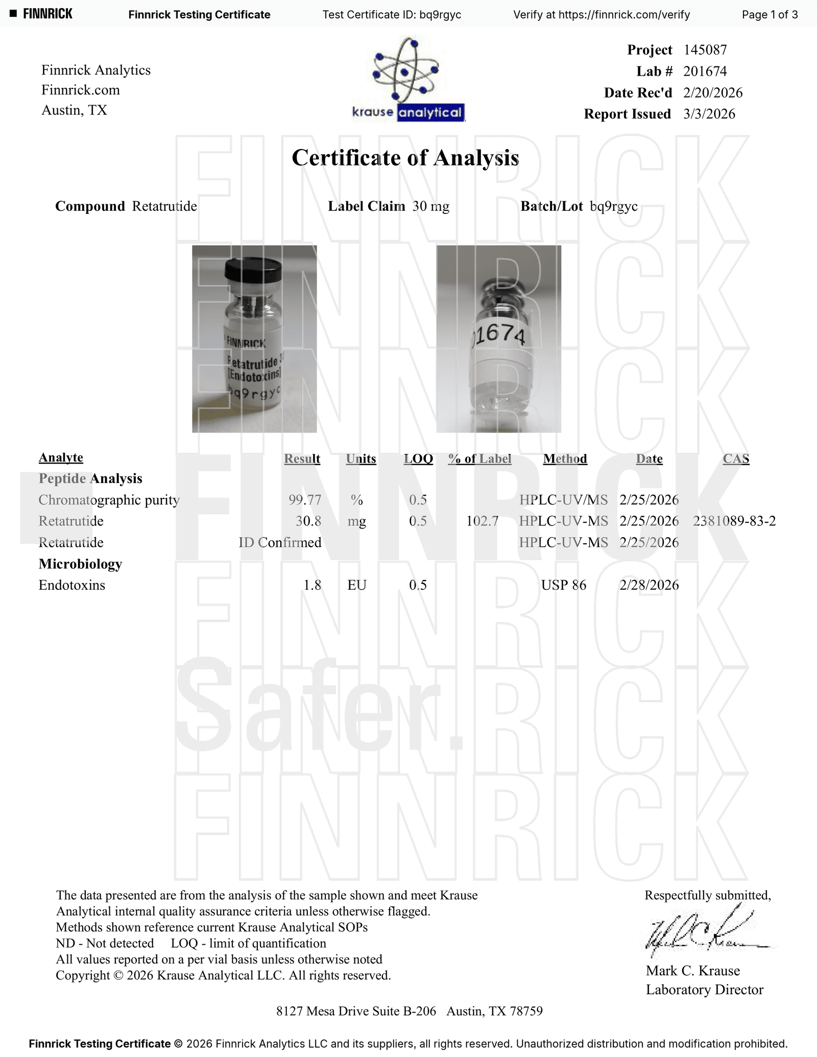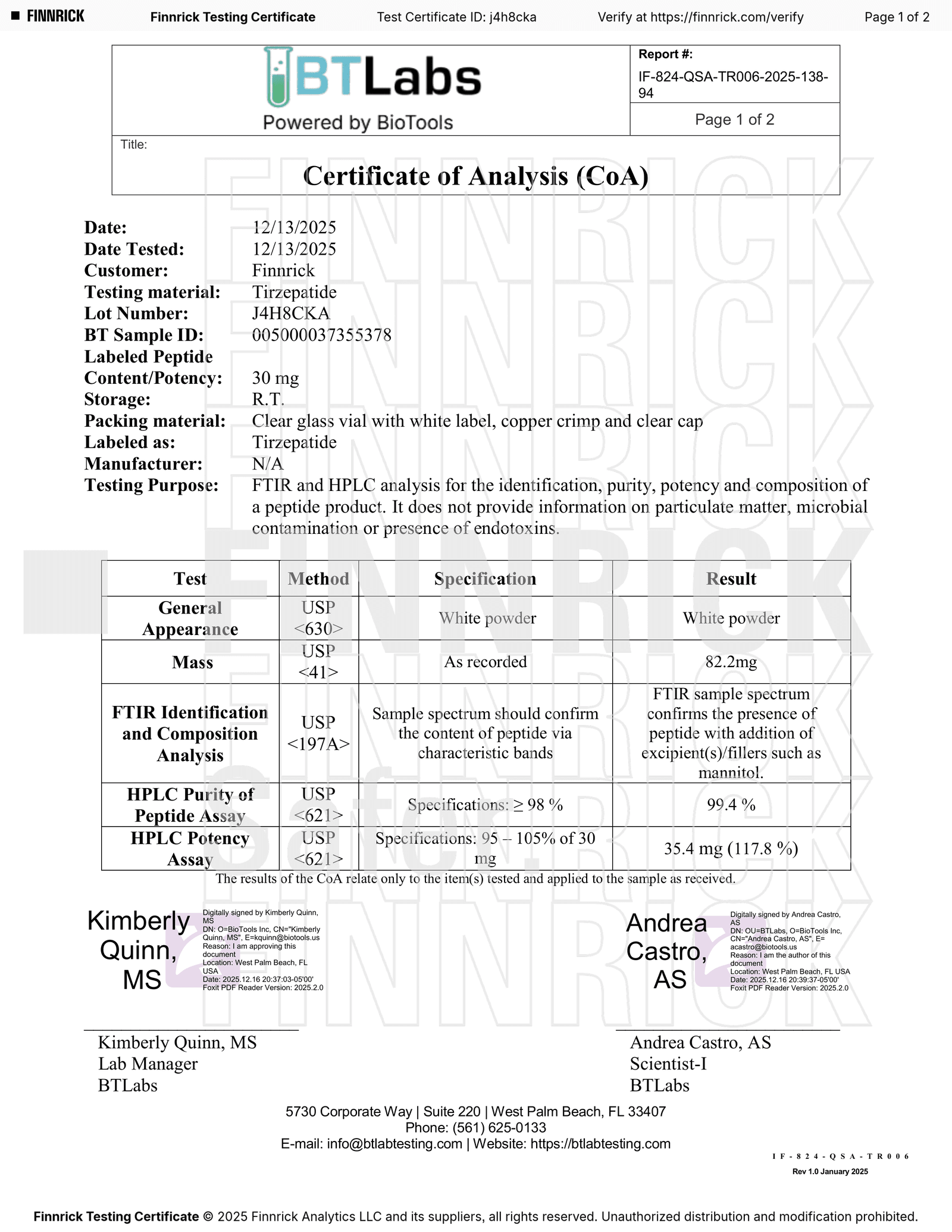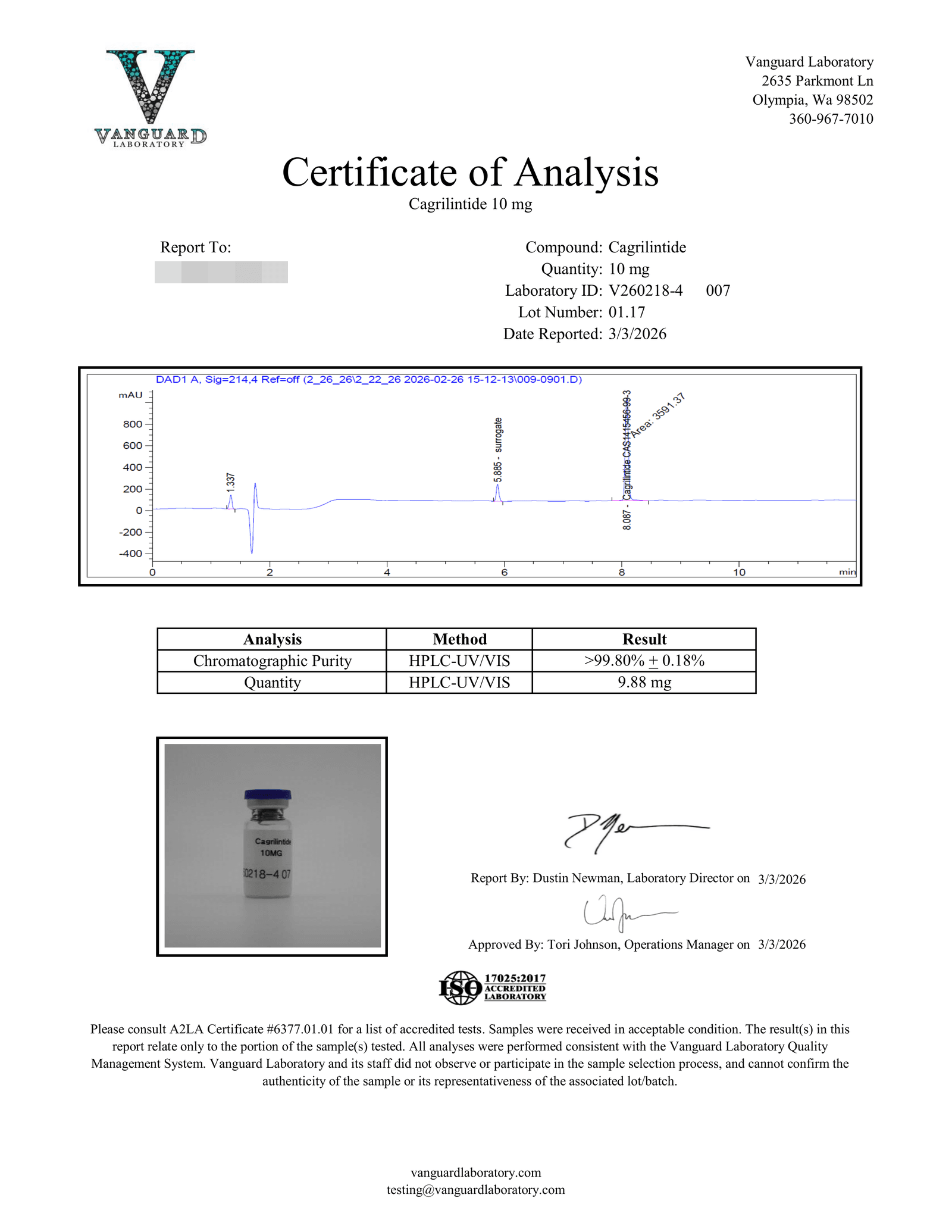 Check the latest lab results of our products. We offer stable and top-notch quality & purity products. Welcome to test any batch of our products. Check our full pricing catalog and find out more products.